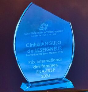 Le 10 mars 2026, à l’occasion de la Journée internationale des droits des femmes, s'est tenue la cérémonie de remise du Prix pour la promotion des femmes, décerné chaque année par l’Association des anciens élèves de l’ENA et de l’INSP. Cette édition 2026 a consacré Cintia Angulo de Leseigneur, reconnue pour son engagement et son parcours exemplaire.